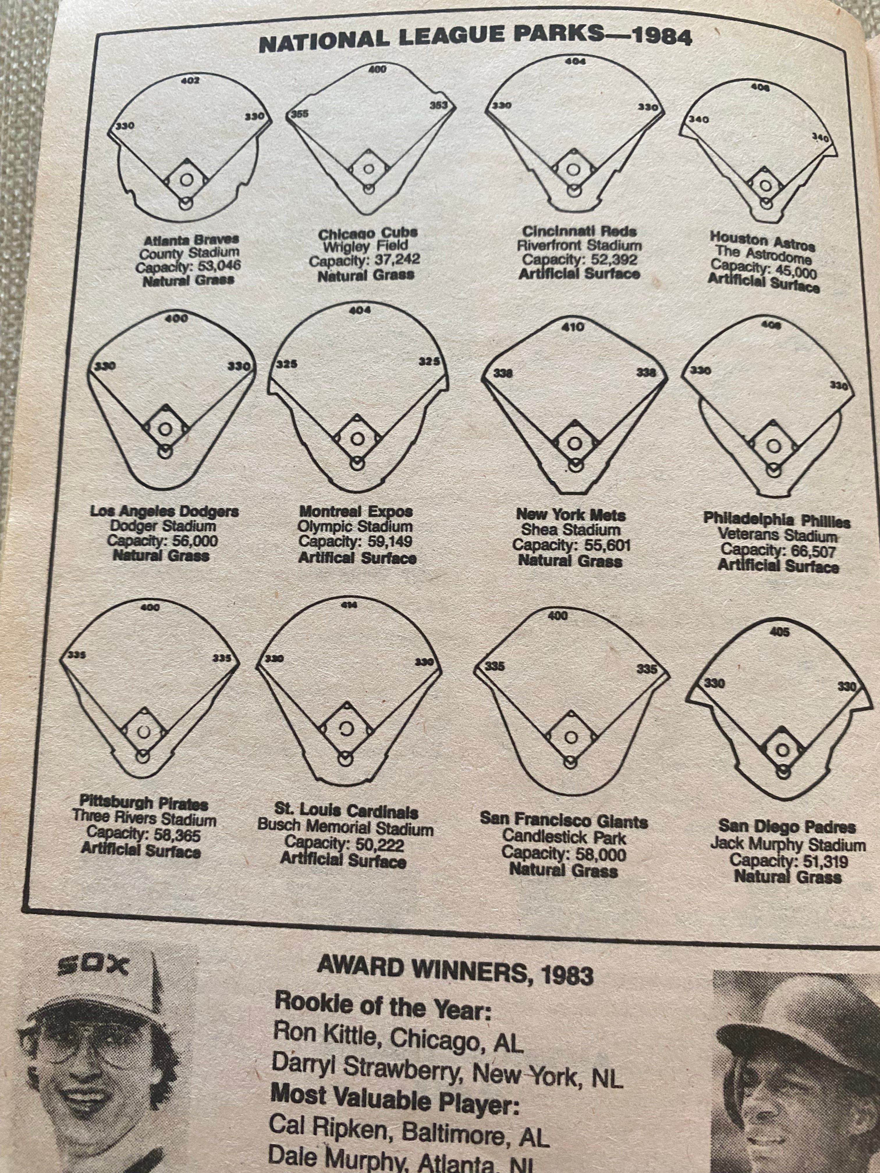 At this point in the 1984 season it was less obvious that the Mets were about to enter a new era. My Baseball Digest collection runs from 1975-1986, and because much of this coincided with a particularly poor Mets era, I found it frustrating to see such a small amount of Mets related content in these issues. One article in this issue laments the decline in Mets’ pitching fortunes, and it is framed by looking at the fortunes of a quintet of Mets pitchers from a more glorious time: Nolan Ryan, Tug McGraw, Jerry Koosman, Jon Matlack, and Tom Seaver. Most of these men were at career crossroads, and their declines brought back memories of a bygone era at Shea. Dwight Gooden had made his major league debut by the time this article was written, but not even the most optimistic (delusional?) Mets fan could have dreamed that a golden age in franchise history was about to emerge as quickly as it did.