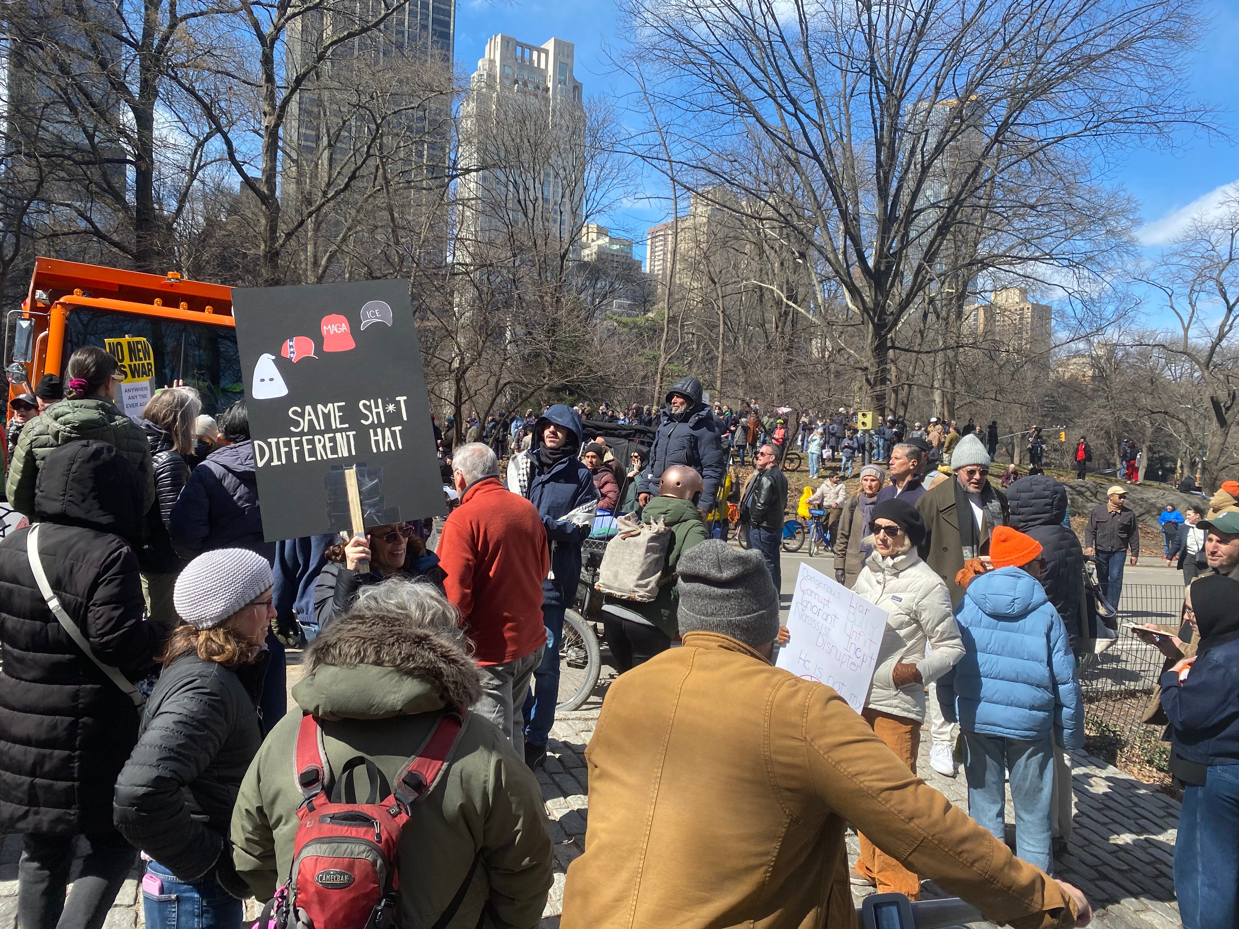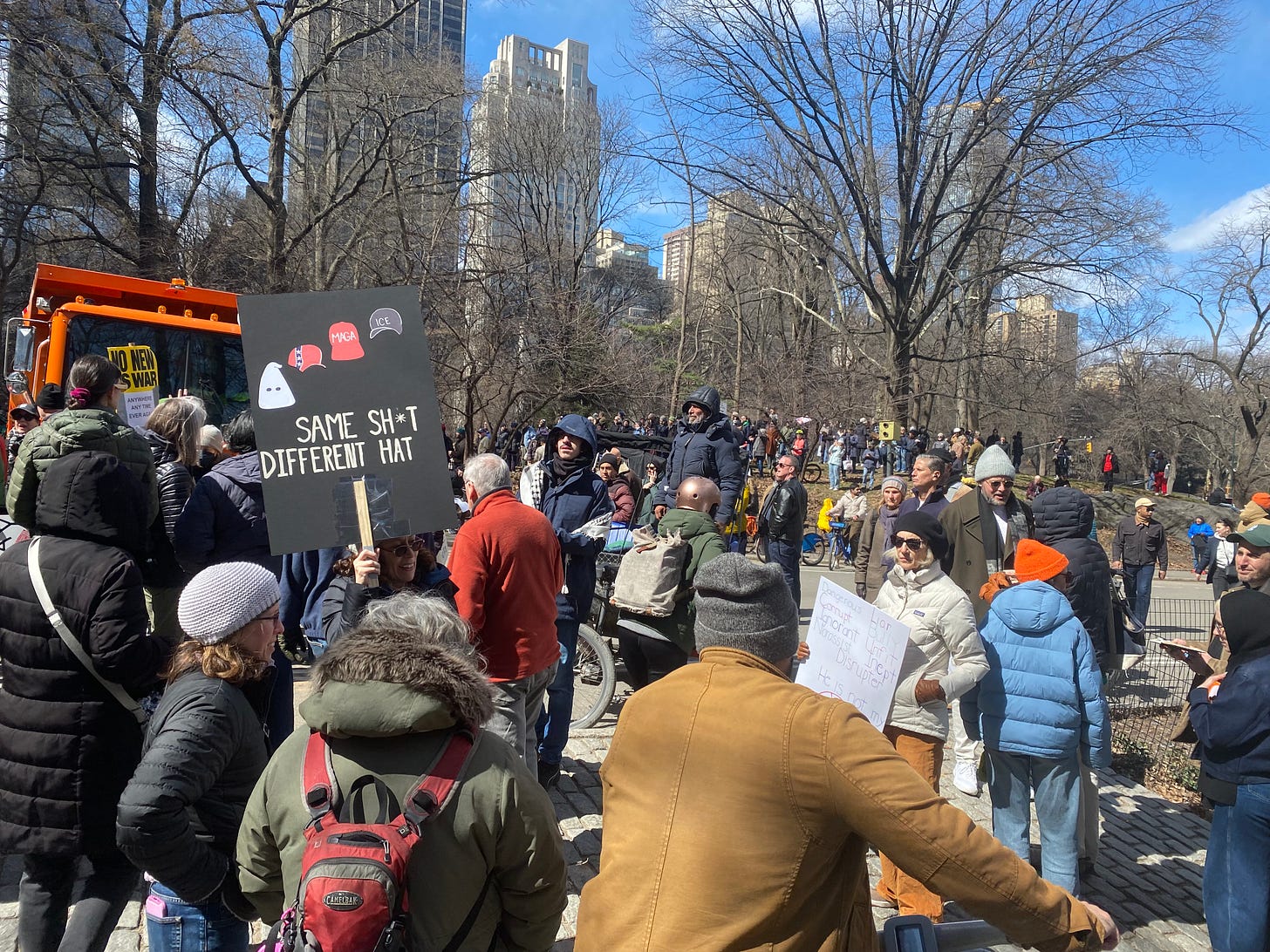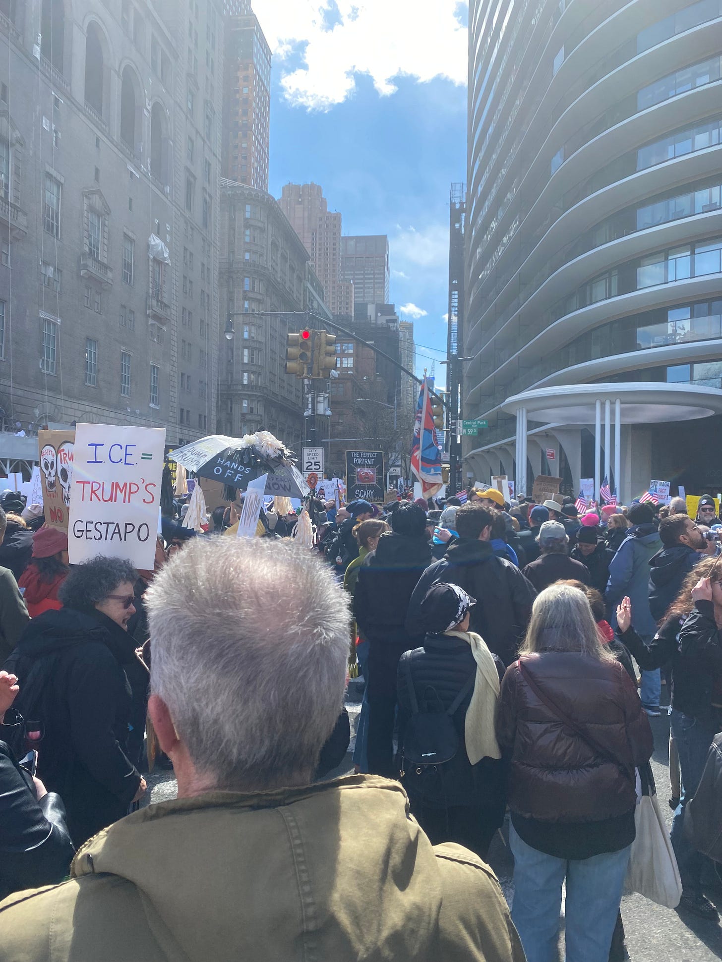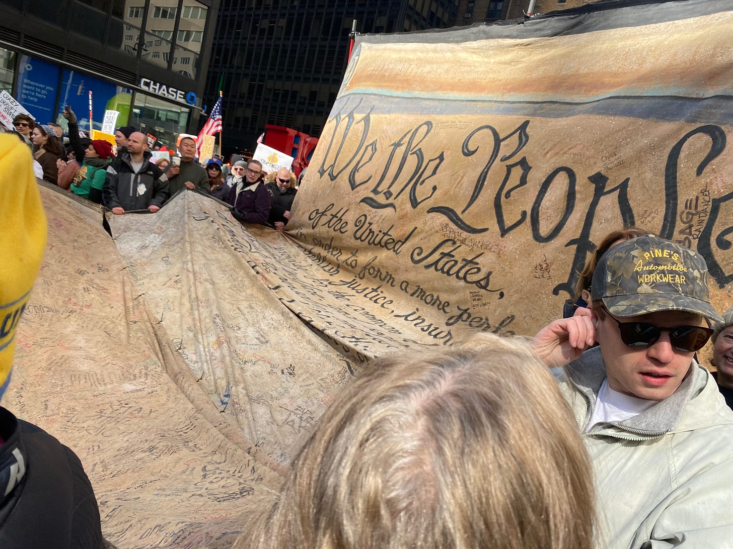 It was colder than one would hope for on a Saturday afternoon in late March, but other than that it was another amazing experience on the No Kings march route. Where I was, the crowds were huge, well organized, and well behaved. A sample of photos that I took are below, I only wish I had gotten a better angle of the people who were carrying a large printout of the Constitution. The picture that I have doesn’t do it justice; it was so massive that it took around 20 marchers to carry it.